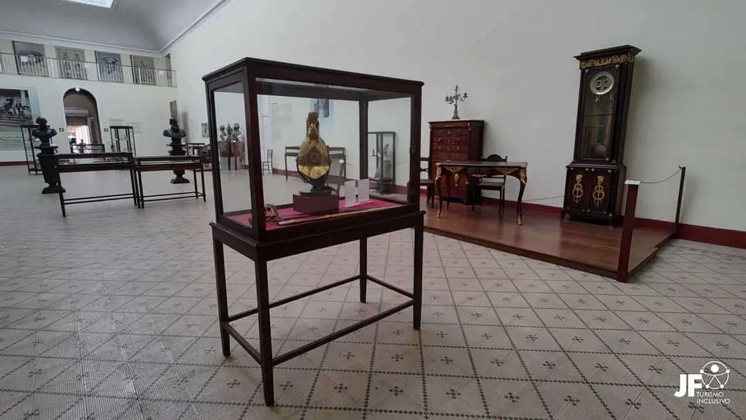 Grande parte da coleção imperial vem do Palácio São Cristóvão, antiga residência de D. Pedro II no Rio de Janeiro. Destacam-se a cadeira do beija-mão de D. João VI, o fardão da coroação de D. Pedro II e a cauda do vestido de sua esposa, Tereza Cristina, além do traje de corte da Princesa Isabel. O museu também abriga importantes obras de arte, como “O Tiradentes esquartejado” de Pedro Américo, e centenas de pinturas e esculturas de artistas nacionais e estrangeiros. A coleção inclui, ainda, cartas de D. Pedro I para a Marquesa de Santos, peças de história natural, armas, indumentárias, joias, moedas, medalhas, cristais, louças, porcelanas, peças sacras e documentos históricos. O mobiliário é um dos mais importantes do país, com peças dos séculos XVI ao XIX.
